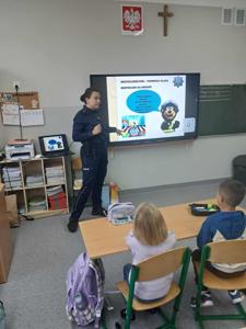 2 października 2025 r. uczniowie klas 1a i 1b uczestniczyli w spotkaniu z panią dzielnicową mł.asp. Katarzyną Dusiło.