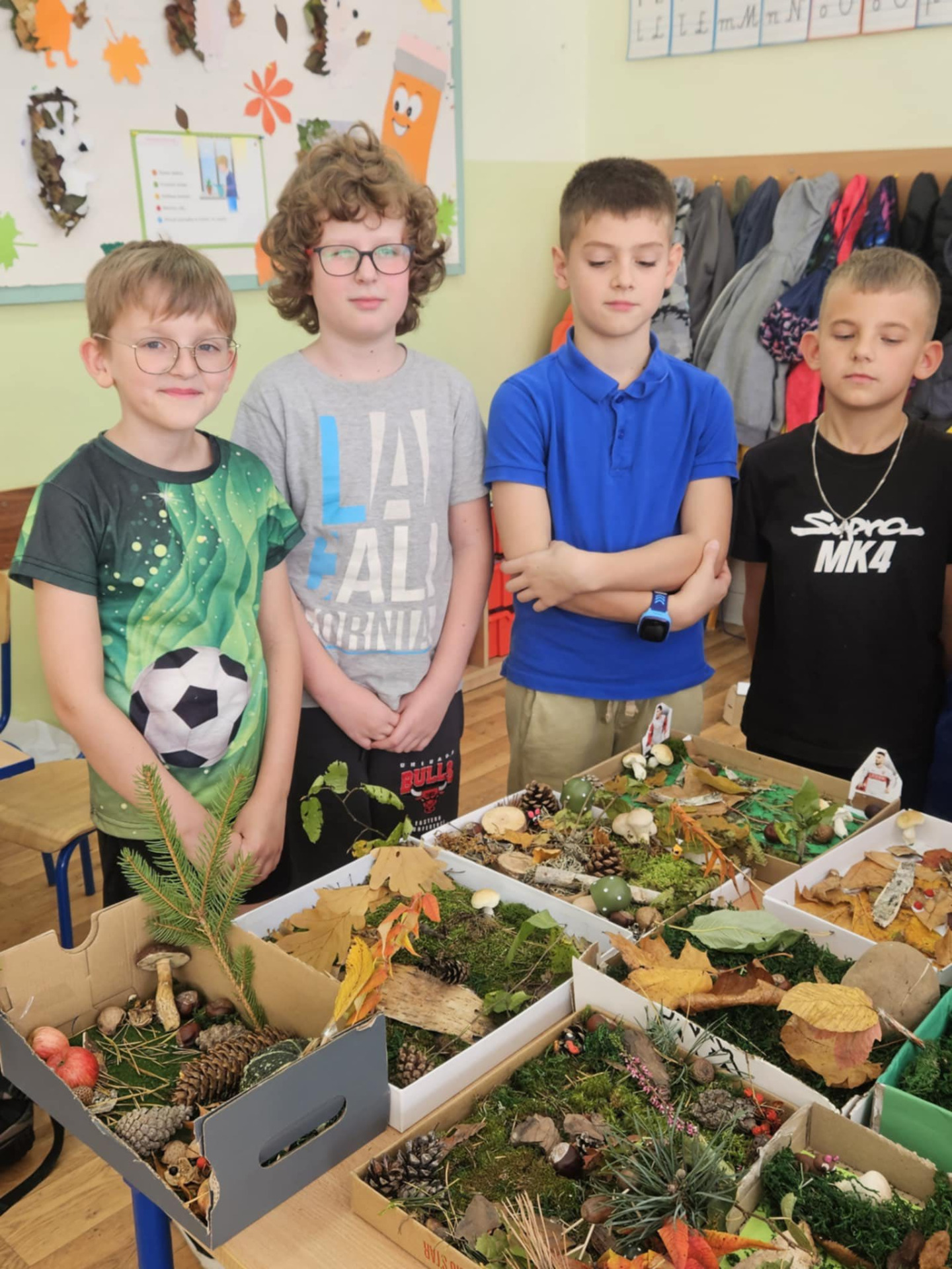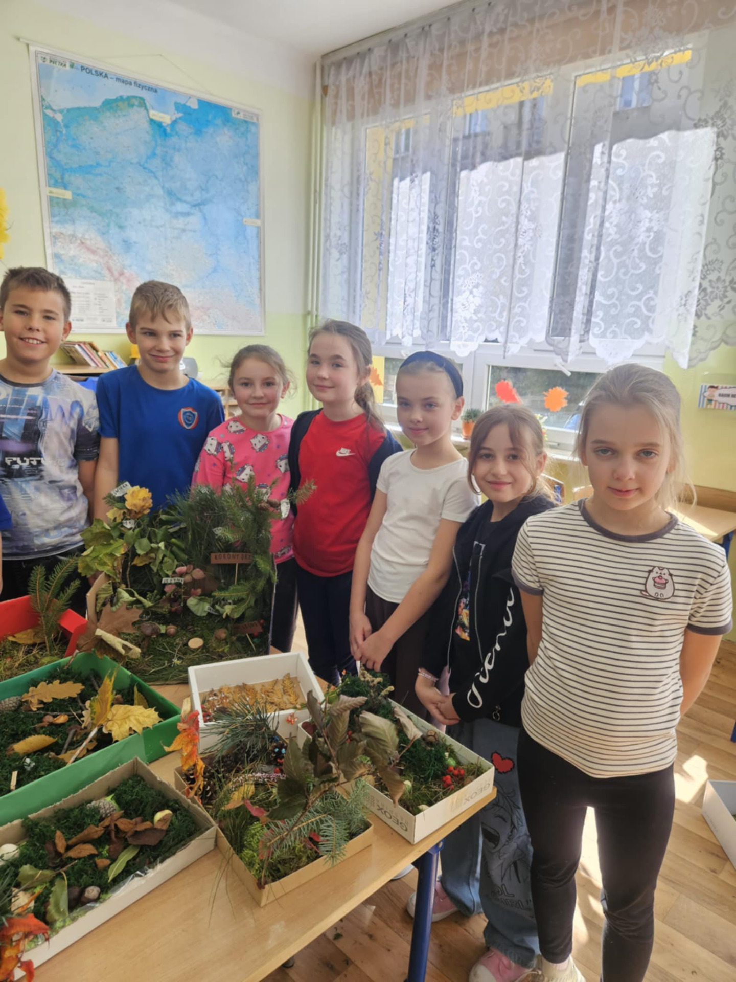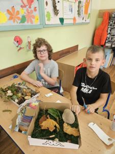 Uczniowie klasy 3b na zajęciach wyruszyli w niezwykłą podróż do świata przyrody. Dzieci stworzyły makiety lasu z naturalnych składników, utrwalając w ten sposób wiedzę o warstwach lasu.