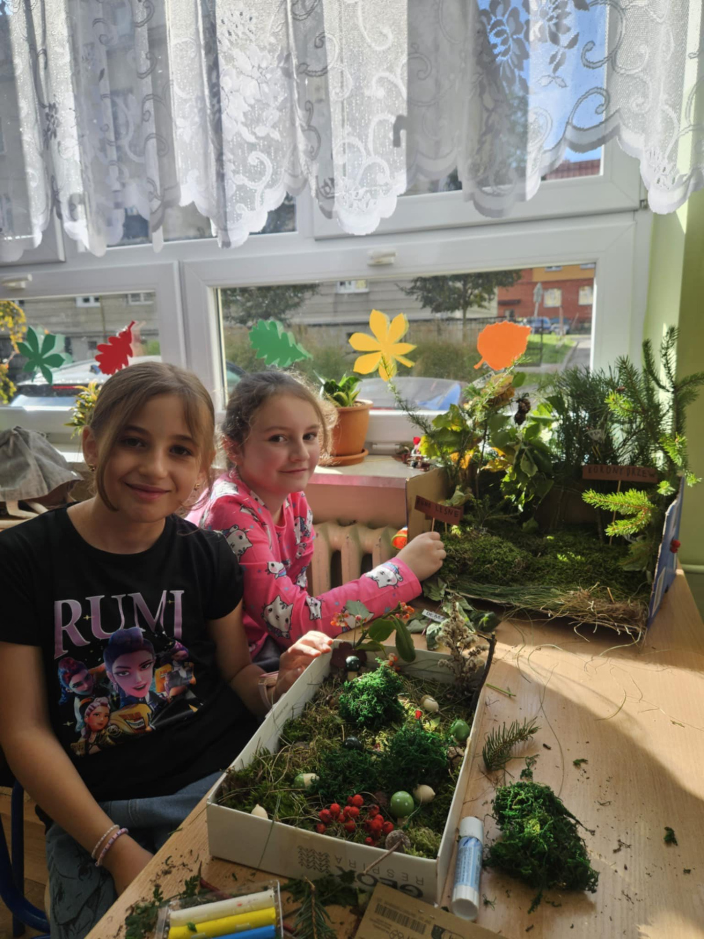 Z liści, szyszek, mchu i patyczków powstały wspaniałe, pełne szczegółów miniaturowe lasy. Te zajęcia były pełne kreatywności i radości.