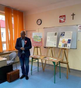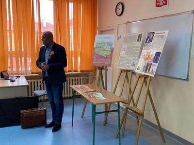 Szóstoklasiści wzięli udział w warsztatach patriotycznych poprowadzonych przez zaproszonego gościa. Uczniowie dowiedzieli się o najważniejszych wydarzeniach w historii Polski, wielkich Polakach i symbolach narodowych. Wszyscy wykazali się znajomością twórczości poety śpiewając wiersze: Idą dzieci w odwiedziny, Nasza biało-czerwona, Pieśń powagi narodowej flagi, Dla Polaków orzeł- ptak, Hymn to powód jest do dumy, Wracamy do Polski, do których muzykę skomponował pan Tomasz Dębicki.