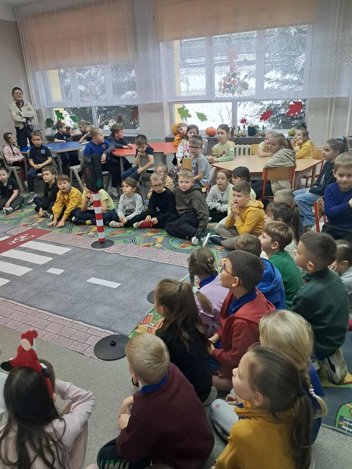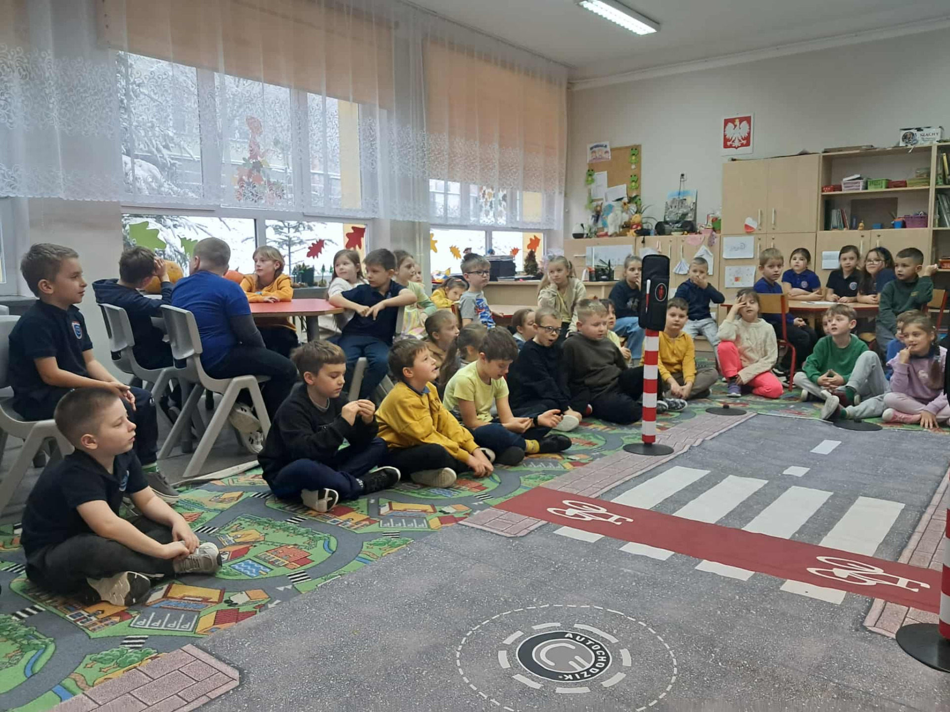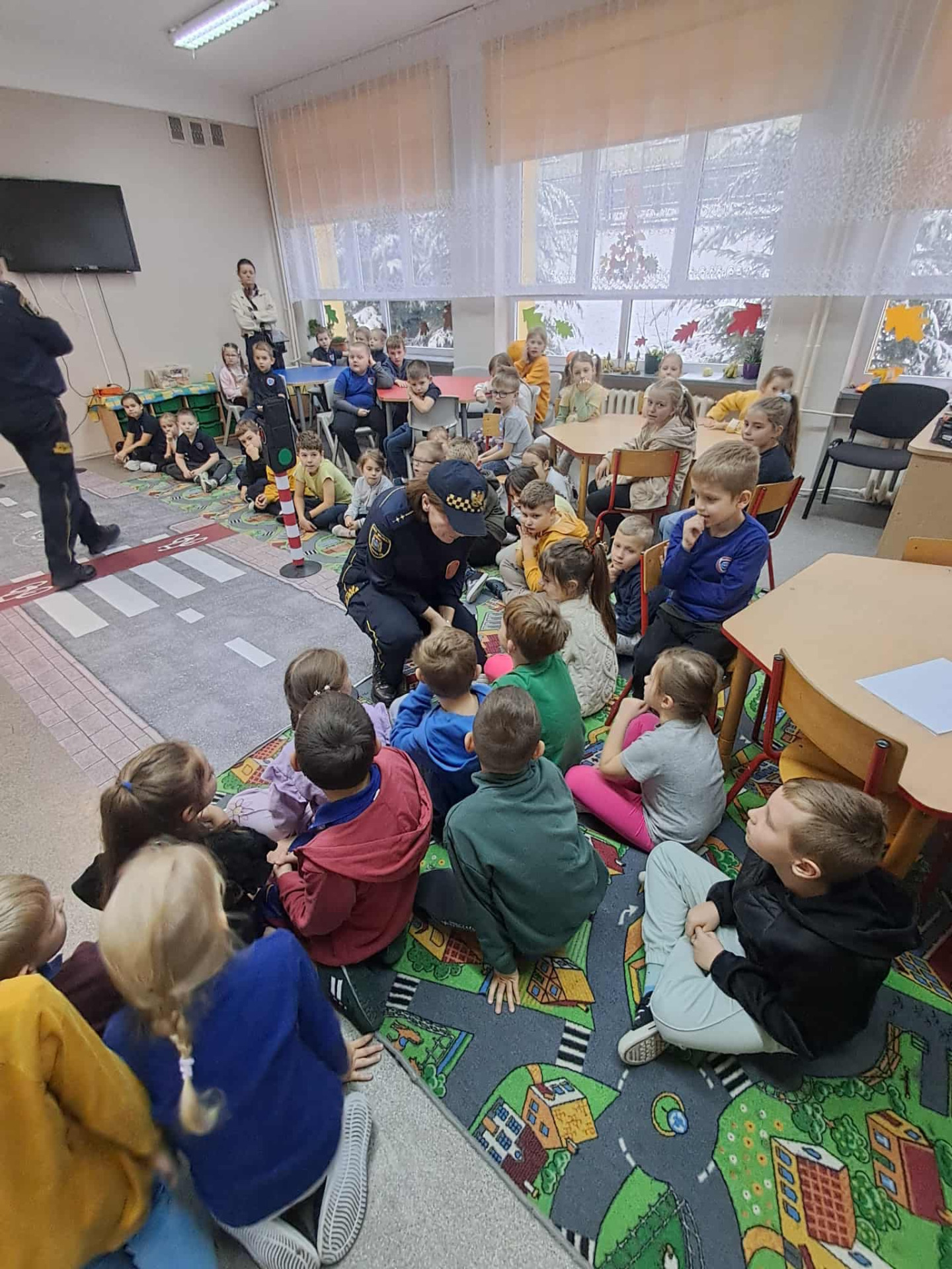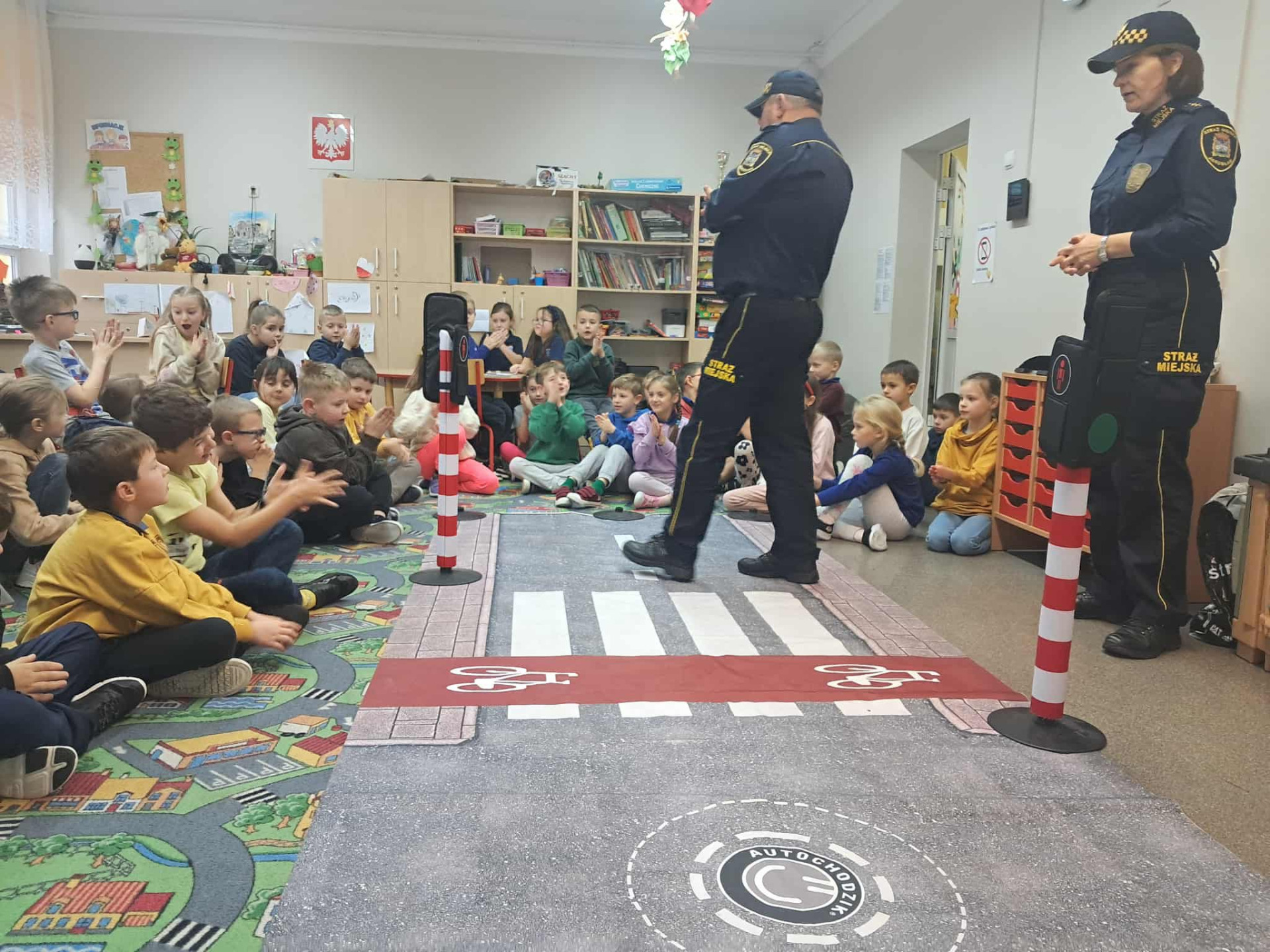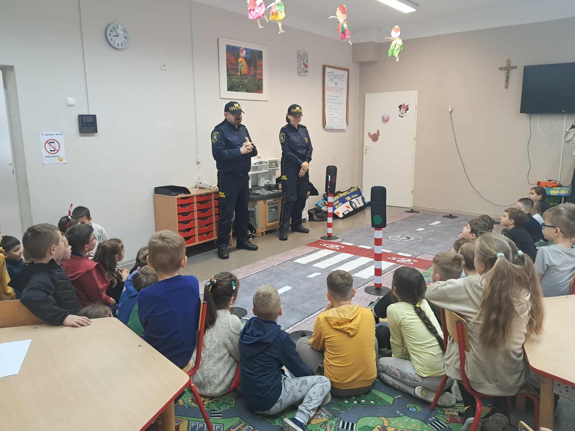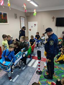 Celem spotkania było promowanie bezpiecznych zachowań na drodze oraz utrwalenie zasad dotyczących właściwego postępowania w sytuacji kontaktu z osobą nieznajomą.