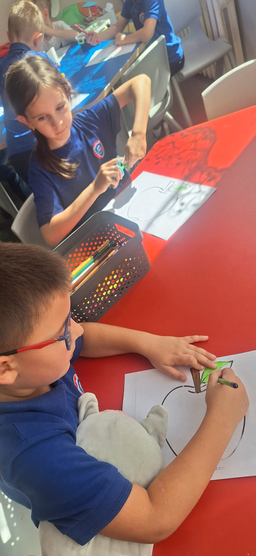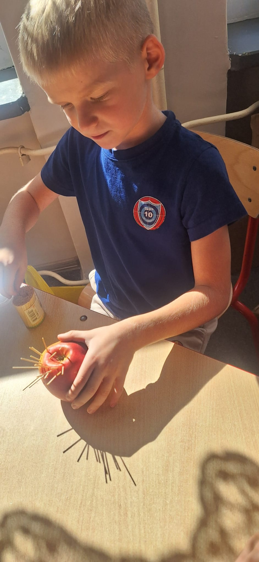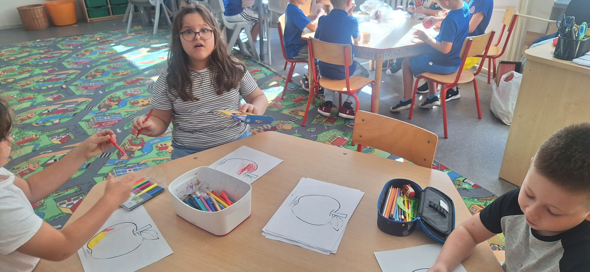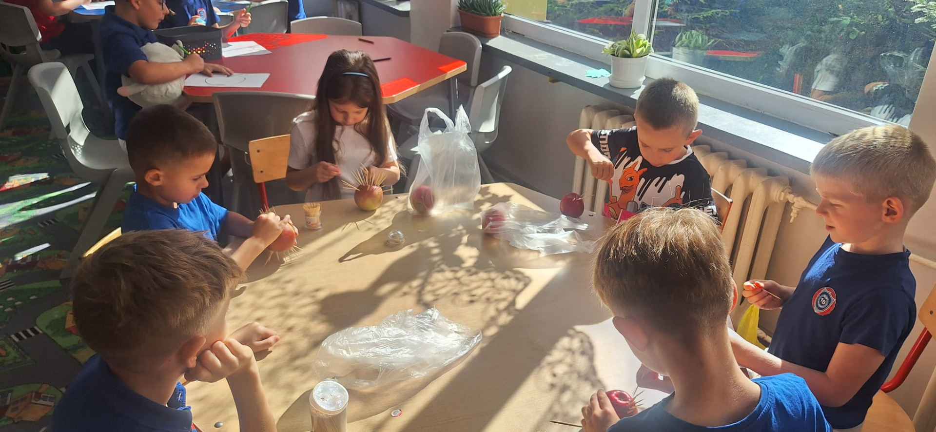 Jabłko czerwone, jabłko złote, Daje nam siłę, zdrowie i ochotę. Na zabawę, na bieganie, I na dobre zachowanie! Zajadaj jabłuszka – smaczne, rumiane, Bo one są pyszne i bardzo kochane! W naszej świetlicy wszyscy to wiemy – Dlatego jabłka dziś świętujemy! 28 września obchodziliśmy w świetlicy Światowy Dzień Jabłka! To wyjątkowy dzień, w którym przypominamy sobie, jak ważne i zdrowe są owoce – zwłaszcza jabłka! Świetliczaki z radością wzięły udział w wielu ciekawych zajęciach. Na początku obejrzeliśmy film edukacyjny pt. „Kazio i zdrowe odżywianie”, a potem rozmawialiśmy o tym, co warto jeść, żeby być zdrowym i pełnym energii. Dzieci świetnie wiedziały, że warzywa i owoce są pełne witamin!